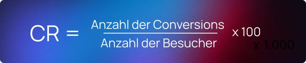 Die Conversion Rate (CR) wird berechnet, indem du die Anzahl der Conversions ins Verhältnis zur Anzahl der Besucher oder Nutzer setzt und das Ergebnis mit 100 multiplizierst.