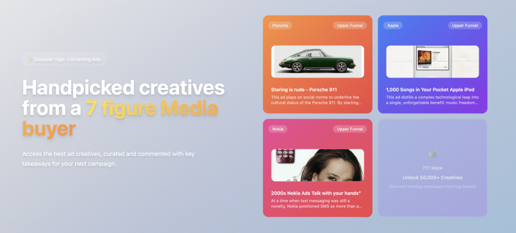 Sondern die besten Ads im Internet. Handverlesen, analysiert und kommentiert von einem 7 Figure Media Buyer.